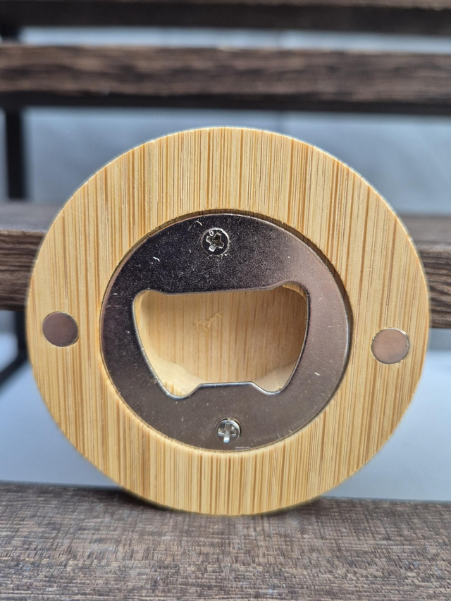 Magnetic bamboo bottle opener